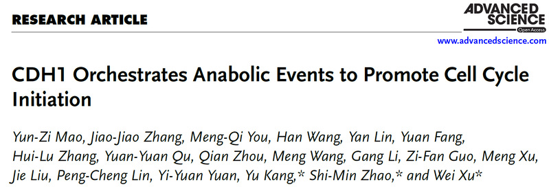 2025年10月7日,复旦大学附属妇产科医院徐薇研究员、赵世民教授和康玉主任团队在《Advanced Science》杂志(IF:14.1)发表了题为“CDH1 Orchestrates Anabolic Events to Promote Cell Cycle Initiation”的研究成果。